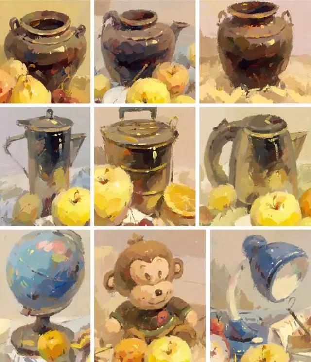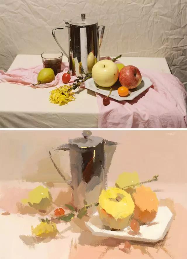 這些都是該組靜物中色彩的總體傾向所構(gòu)成的色調(diào)。我們應(yīng)在寫生中牢牢地把握并記住靜物的色調(diào),并將其貫穿于寫生的始終。