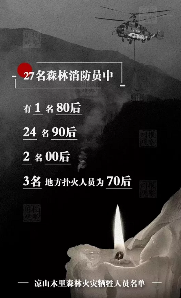 27名森林消防隊員和3名地方撲火人員犧牲。